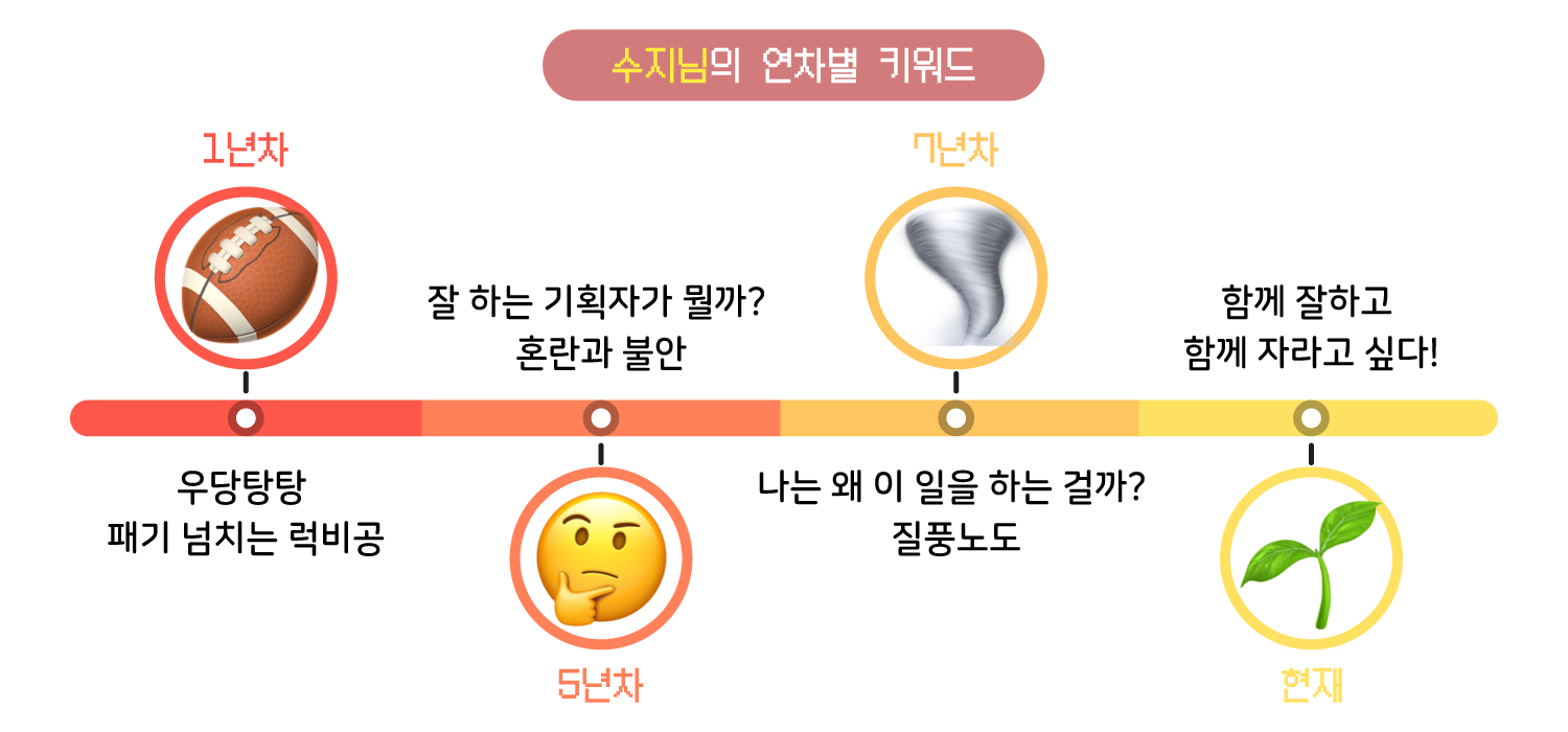 PPT๋ฅผ ์ธ๋ก๋ก ์ธ ์ ๋๋ก ๋ฌด์งํ ์ํ์์ง๋ง, ๋ง์ ๋์์ ๋ฐ์๊ณ ๊ธฐํ ์ผ์ด ์ ์๊ฒ ์ ๋ง๋๋ผ๊ณ ์. ๊ทธ๋ ๊ฒ ์ ์ ๋ ์ค๋์ญ์ ๊ฐ๊ณ ์ผํ๋ค ๋ณด๋, ์ง๊ธ์ PM์ผ๋ก ์ผํ๊ณ ์์ด์. :) ์ด์ฐ๋ณด๋ฉด ์ ์ ์ค์ง๋๊ณผ ์ฐ์ฐํ ์ด์ผ๋ก ์์๋๋ค๊ณ ๋ณผ ์ ์๊ฒ ๋ค์. ๊ธฐํ์ ์์ํ์ง๋ ๋ฒ์จ 10๋