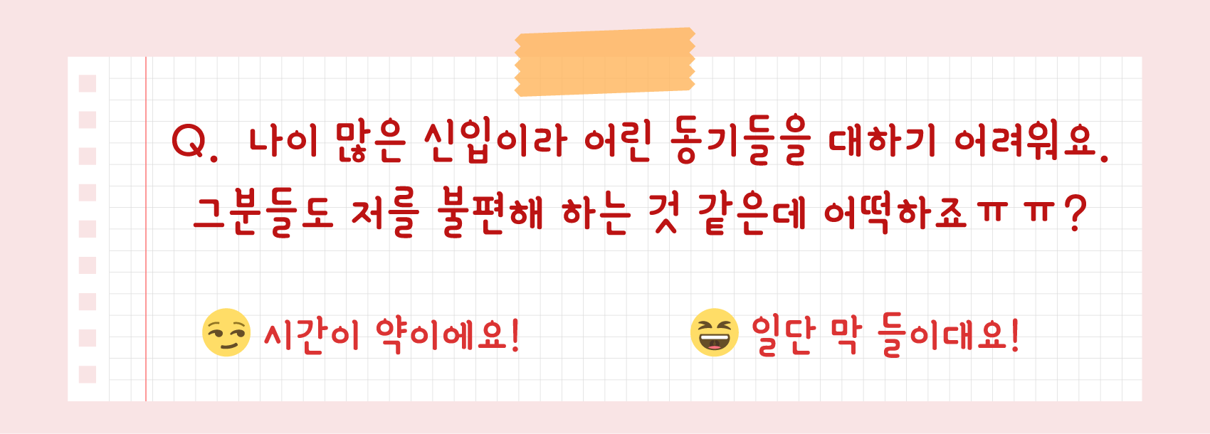 ์ด ํ์ฌ๊ฐ ๊ณ ๋ฏผ๋๋ ์ด์ ๋ค์ด ์์ด์. ๊ฐ์ฅ ํฐ ์ฒซ ๋ฒ์งธ ์ด์ , ์กํ๋๋์ด๋ ํฌ๋ ๋ง์ก์ ํ๊ธฐ๊ฐ ์ ์ธํ ์๋ค! ๋ ๋ฒ์งธ, ์ผ๊ทผ ์๋น์ด ์๋ค! ์ธ ๋ฒ์งธ, ํ์ฌ ๋ด๋ถ ๋ถ์๊ธฐ๊ฐ ์ฝ๊ฐ.. ์นจ์ธํ๋ค๊ณ ํด์ผํ๋..? ๊ทธ๋ ์ต๋๋ค. ์ฌ์ค ์๊ฐํด๋ณด๋ฉด ๋ณ ๊ฑฐ ์๋๊ธด ํ๋ฐ... ์ฒซ ํ์ฌ๋ผ ์๋ฌด๋๋ ๋ถ์ํฉ๋๋ค. ์ ๋ฐฐ ๋ฝ๋ฝ๋๋ค์ ์กฐ์ธ์ด ๊ฐ์ ํด์ใ