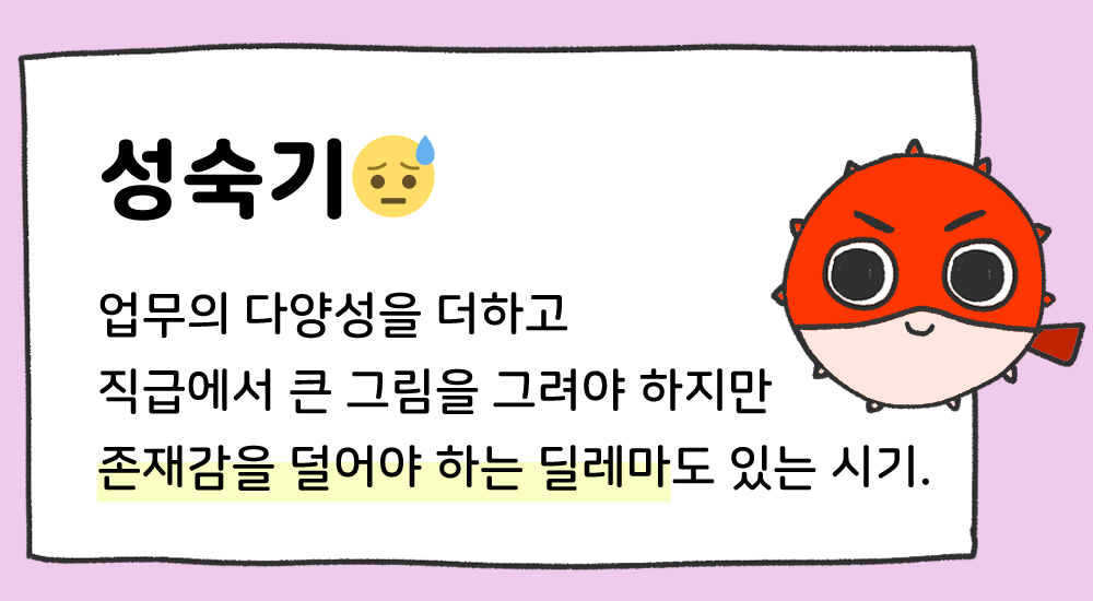 ๋ฌด์ ๋ํ ๊ฒฝํ๊ณผ ์ง์์ ๋๋ ์ ์๋ ํ๋์ ์ฐพ์ ์ฌ์ ์ค์๊ฐ์ ์ค์ฌ์ผ ํด์! ์ง์ฅ๊ณผ ์์ ํ ๋ถ๋ฆฌ๋ ๊ณต๊ฐ์์์ ํ๋์ ๋๋ฆฌ๋ฉฐ ์ฃผ๊ธฐ์ ์ธ ํ๊ธฐ๊ฐ ํ์ํฉ๋๋ค. ![]() 4.'์ฑ์๊ธฐ'์ ๋ํ ํคํ์ ์กฐ์ธ > 4~8๋