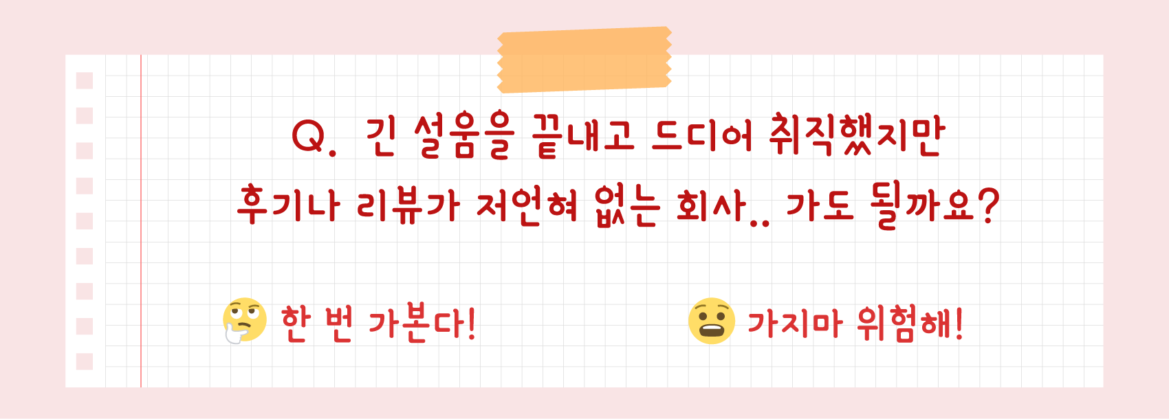 ์ฐจ ๋ฝ๋ฝ์ด๋ค์ ์ต๋ ๊ณ ๋ฏผ์ด ์๋๊น ์ถ์๋ฐ์. ๊ฒ๋ค๊ฐ ์ง๊ธ ์๊ตญ์ด๋ฉด ๊ณ ๋ฏผ์ด ๋๋ ๊ฒ ๋น์ฐํ์ฃ . ์ด์ง๊ฐ๋์ด ์ผ๋ง๋ ๊ณ ๋ฏผ๋๊ณ ํ๋ค์ง ์ดํด๊ฐ ๊ฐ๋๋ค. ์ ๋ ์ง์ฅ์ ๊ทธ๋ง๋๊ณ ์ด์ง ์ค๋น๋ no! ํ ์ง์ฅ์ ๋ค๋๋ฉด์ ์ด์ง ์ค๋น๋ yes! ๋ผ๋ ์๊ฒฌ์ ๋๋ฆด๊ฒ์. ์๋ฌด๋๋ ์๊ตญ์ด ์๊ตญ์ด๋ค ๋ณด๋ ์๋ฌด๋ฐ ๋ณดํ ์์ด ๋์ ์ ํ๊ธฐ์ ๋ฐ์ ๋๋ฌด๋ ์ถ์์.๐ฅถ ํ๋์๊ฒ ์ง๋ง ์กฐ๊ธ๋ง ๋ฒํฐ๋ฉด์ ์ด์ง ์ค๋น๋ฅผ ์์ํด ๋ณด์๋ฉด ์ด๋จ๊น์? ์ด๋ฒ์๋ ์ง๋ ๋ ํฐ๋ฅผ ํตํด ๋ฝ๋ฝ์ด๋ค์ ์๊ฒฌ์ ๋ฐ์์์ฃ ! (์ ์ ๋ ๋ ๋ถ๊ป๋ ์ปคํผ ํ ์์ฉ ์ฉ๋๋ค!โฅ) ๋ค๋ฅธ ๋ฝ๋ฝ์ด๋ค์ ํ๋ ๋ค์ด๋ณผ๊น์?